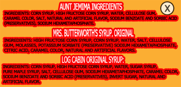 Maple syrup is a much healthier sweetener than the fake stuff like Aunt Jemima, Mrs. Butterworth, Log Cabin. Unless you enjoy hurting your body. Click to see what’s in the fake stuff.Once you try Tammi’s 100% pure and all natural maple syrup the fake stuff is history.