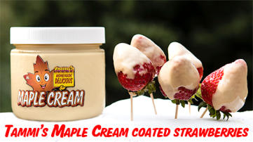 Spreading maple cream on bagels, toast, biscuits, or if you’re in a hurry spread it on a pancake roll it up and you’re out the door. Eating on the go. Feeling frisky? Serve Tammi’s Maple cream on strawberries, celery, crackers or whatever trips your trigger. Don’t be surprised if find yourself or catch one of the family eating it with a spoon. Finger dipping has also been seen on more than a few occasions. It’s really is that good! If you come up with a new way to enjoy Tammi’s Maple Cream? We would love to hear about it. Click to contact us.